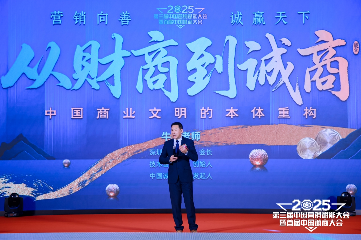 他表示:在深圳这座创新之城,我们见证了中国营销的崛起——AI赋能、数据驱动,让“世界营销看中国,中国营销看深圳”成为现实!但科技狂飙中,诚信的缺失正侵蚀商业根基。今天,我们高举诚商精神旗帜:诚信是智能营销的灵魂,是穿越周期的护城河!左手AI利剑开拓未来,右手诚信盾牌守护底线,唯有二者融合,才能引领中国商业走向真正的新纪元!